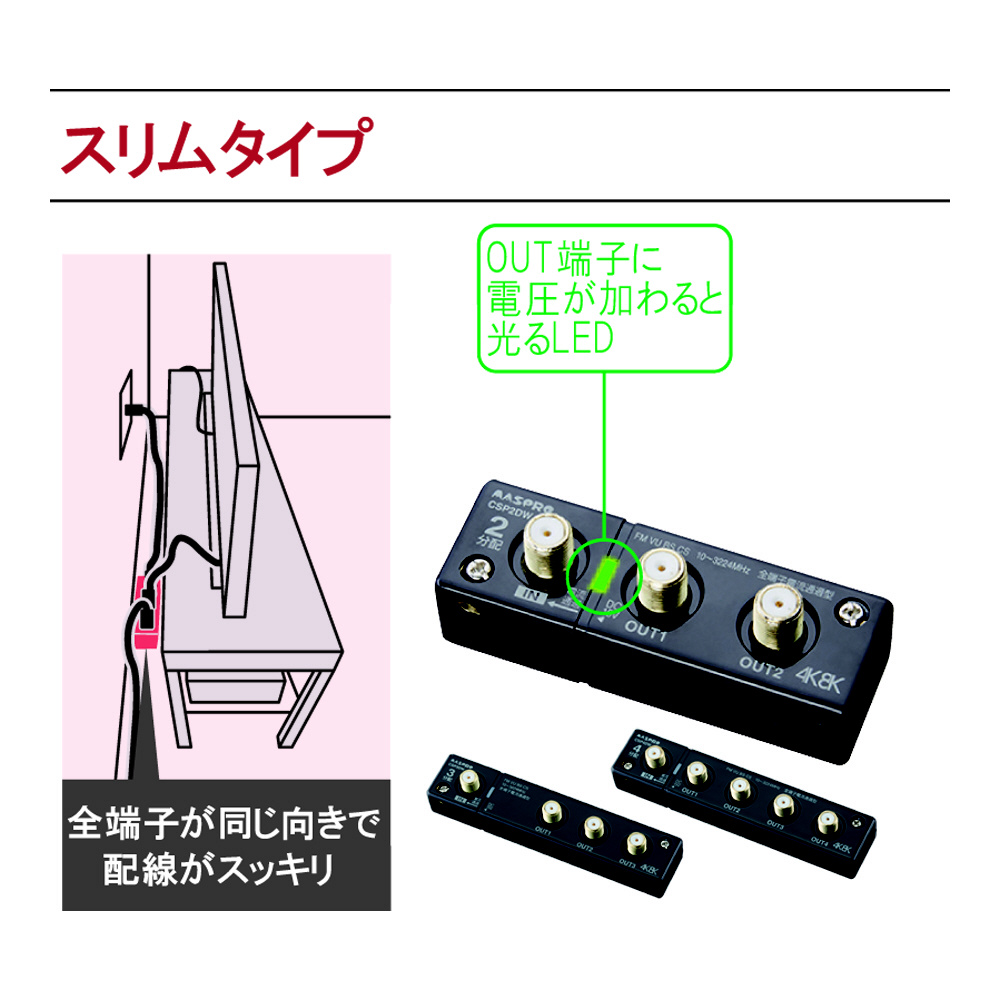 4K・8K衛星放送で使用される予定の3224MHzまでの周波数に対応した分配器です。