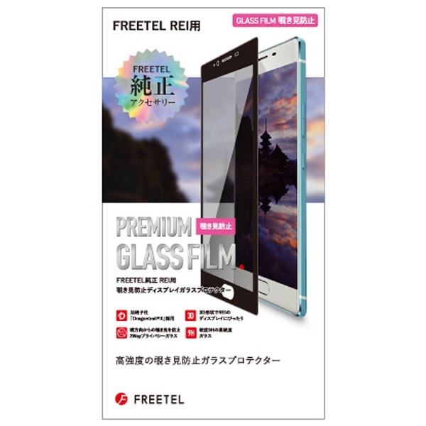 FREETEL純正 REI用 覗き見防止ディスプレイガラスプロテクター。