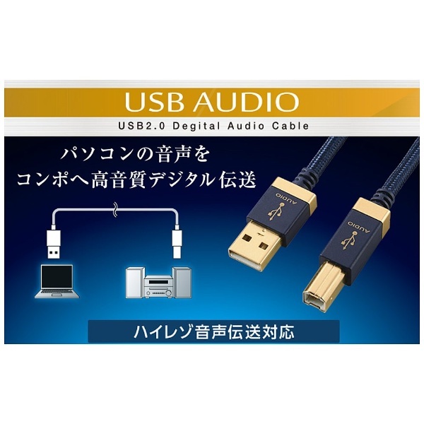 パソコンの音声をコンポやアンプなどに高音質デジタル伝送できるUSB AUDIOケーブル(USB2.0 Standard A-USB2.0 Standard B)。