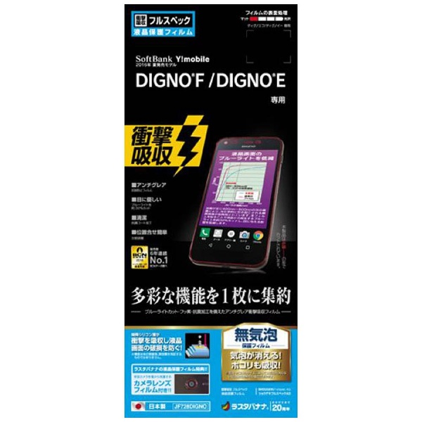 【在庫限り】 DIGNO F / DIGNO E用 ショウゲキガードナー 衝撃吸収フルスペックフィルム ブルーライトカットタイプ JF728DIGNO