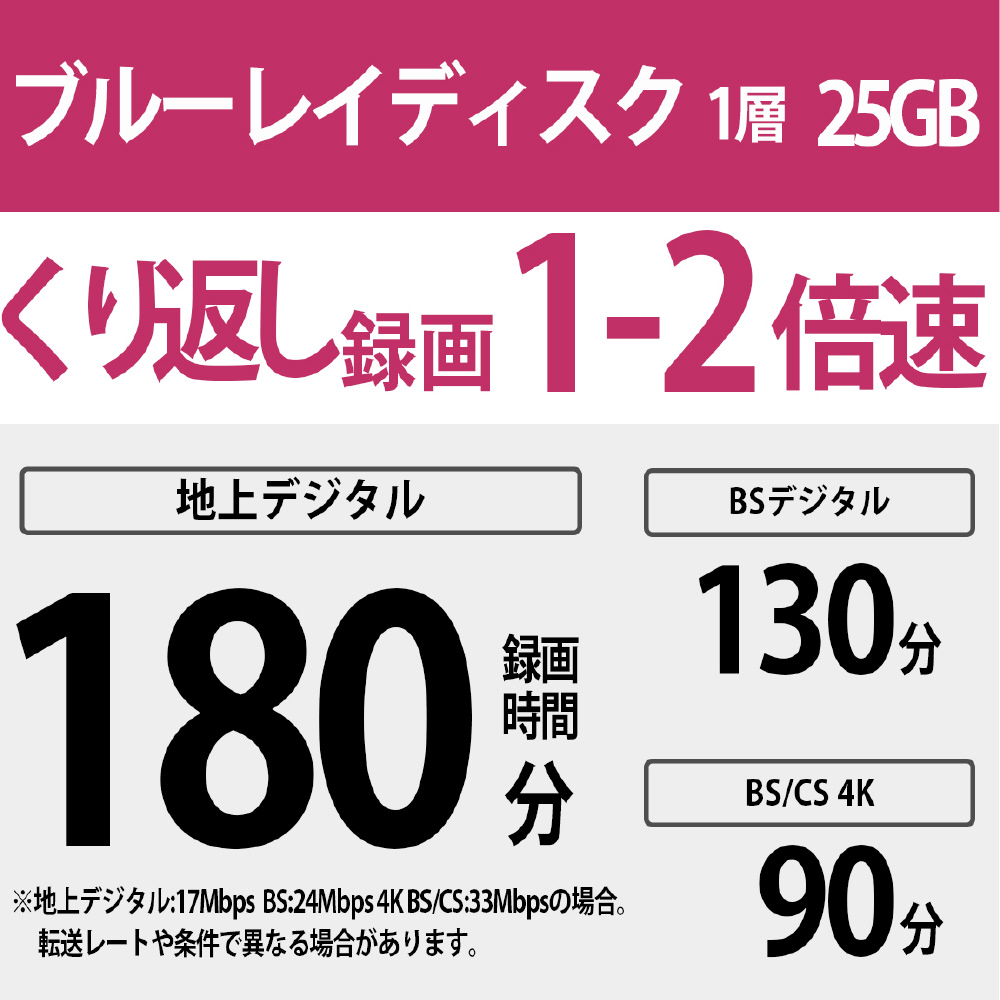 繰り返し録画に対応したインクジェット対応ワイド(BD-RE1層:2倍速)