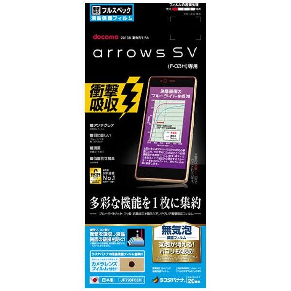 | 商品名 | 【在庫限り】 arrows SV F-03H用 ショウゲキガードナー 衝撃吸収フルスペックフィルム ブルーライトカットタイプ JF720F03H |