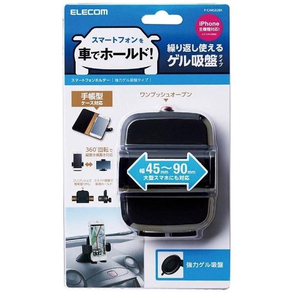 | 商品名 | 車載スマホスタンド(ゲル吸盤・ブラック) P-CARS02BK |