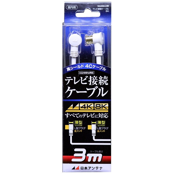 | 商品名 | 4K8K対応 3mアンテナケーブル(4C)[L型プラグ-L型プラグ] NA4GLL3B 【864】 |