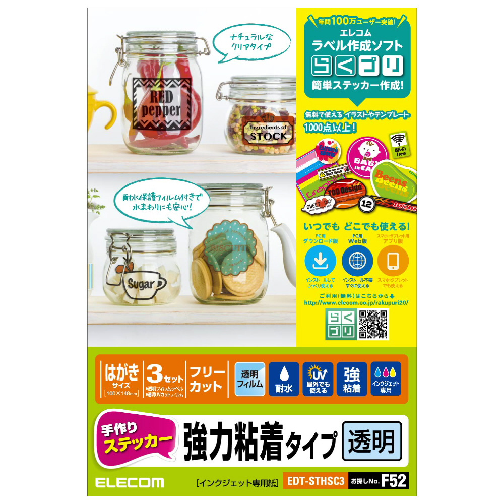 手作りステッカー(強粘着/ハガキ/3枚入り/透明) EDT-STHSC3