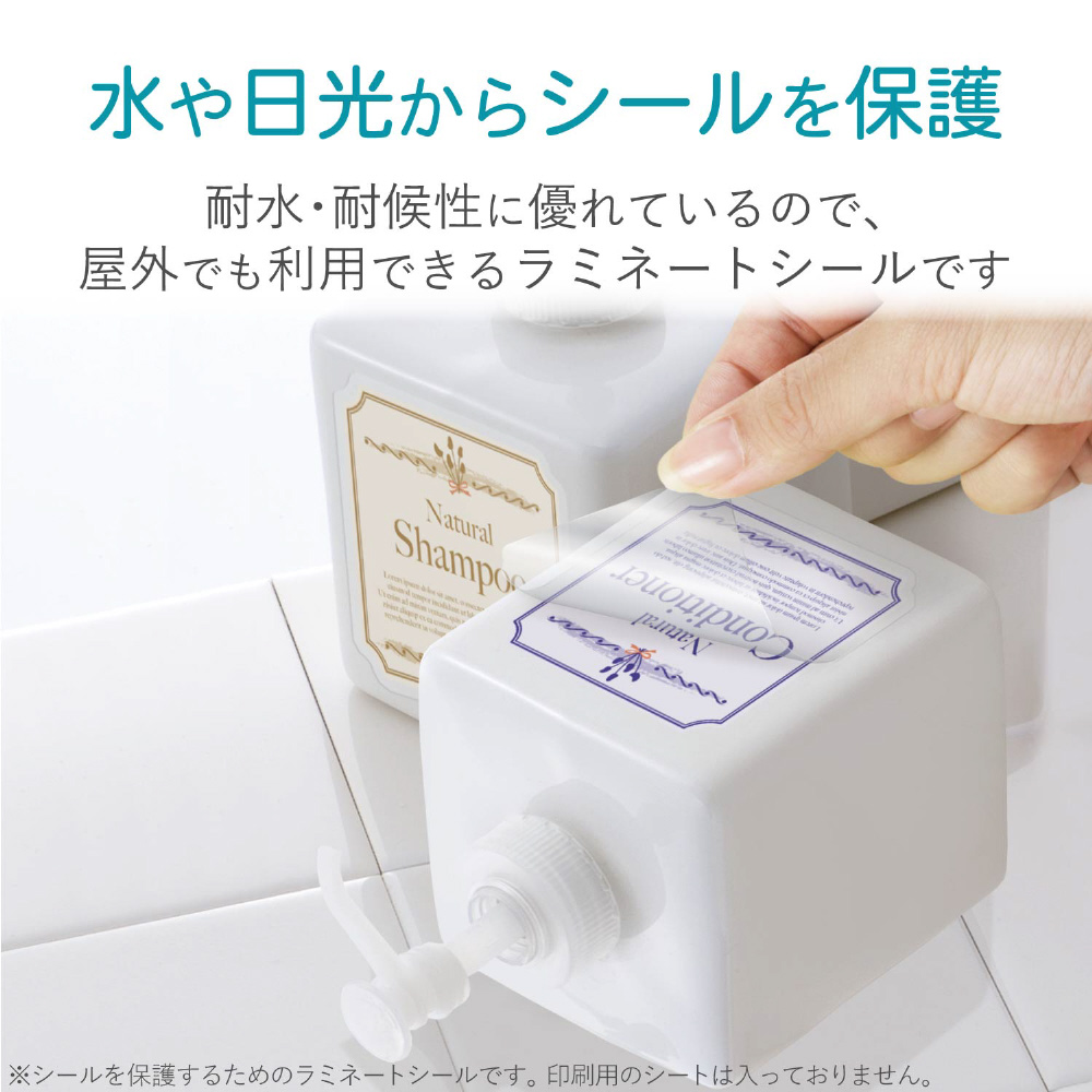 水や日光からシールを保護するラミネートシール!耐水・耐候性に優れているので、屋外でも利用できます!自由な形にカットできるフリーカットタイプです。
