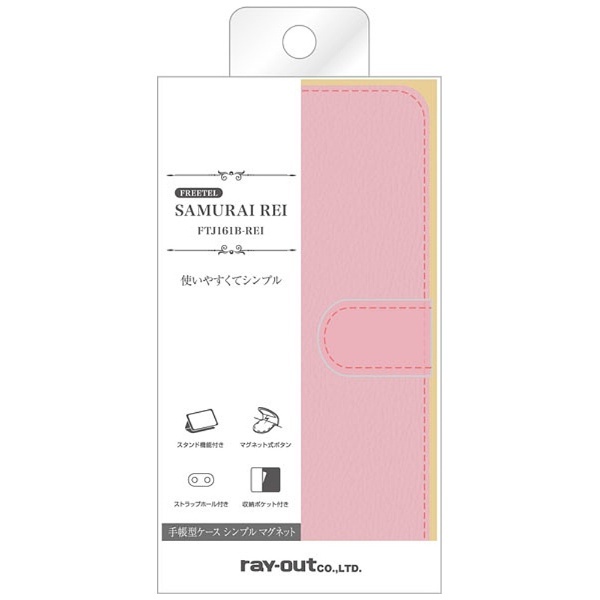 【在庫限り】 FREETEL REI用 手帳型ケース シンプル マグネット ペールピンク RT-FREELC1/PP