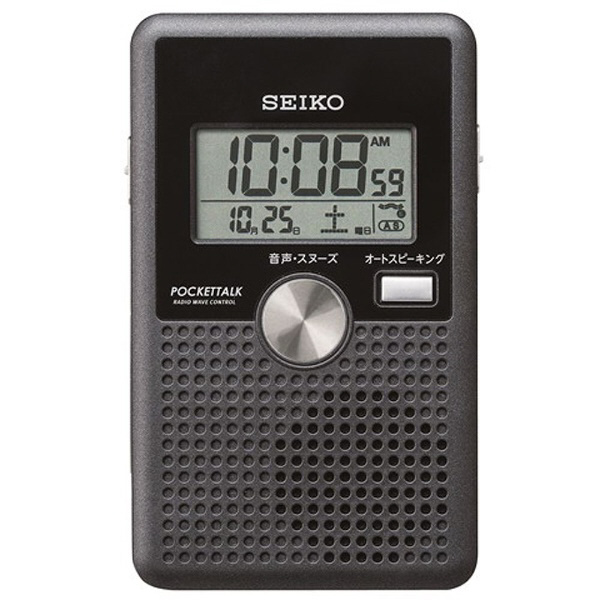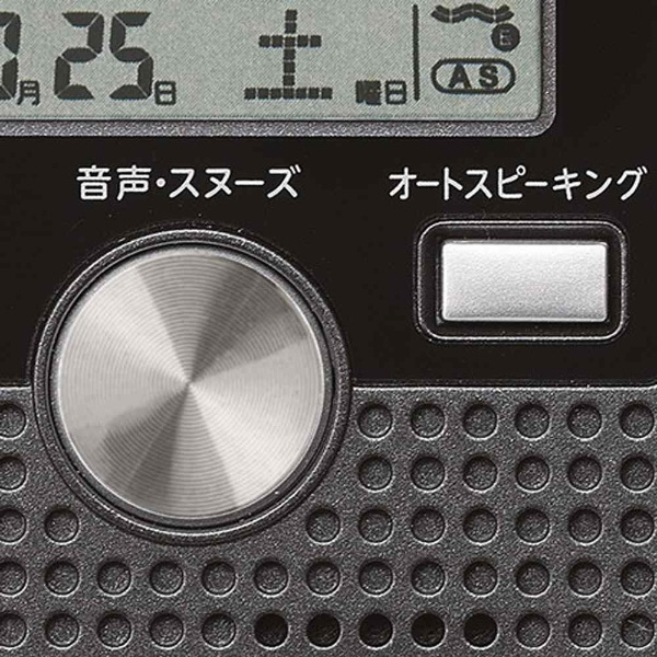 持ち運びできるコンパクトなサイズの音声にて時刻をお知らせしてくれる電波目覚まし時計です。