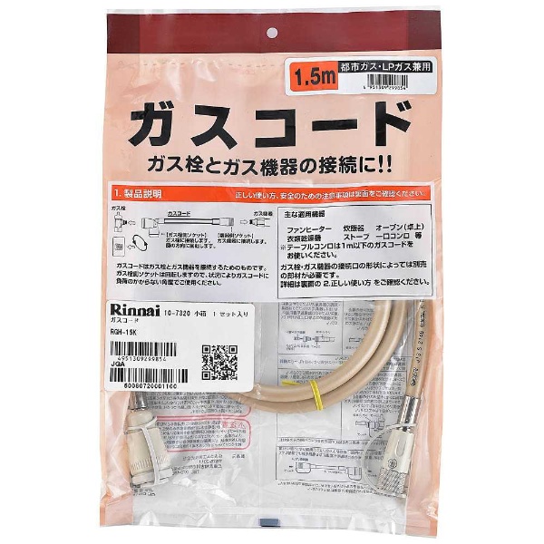 都市ガス・プロパンガス兼用ガスコード (1.5m) RGH-15K