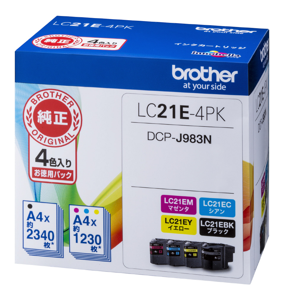 【純正】 LC21E-4PK 【ブラザー純正】 インクカートリッジ 4色パック
