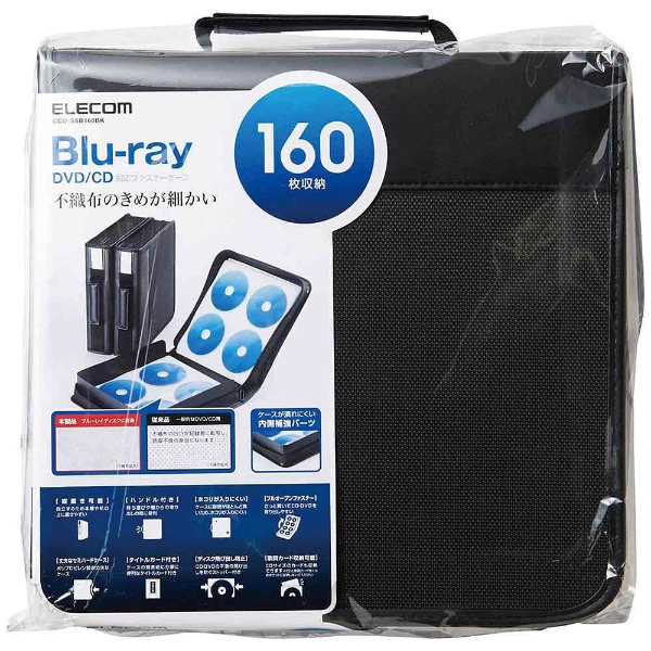 160枚収納 Blu-ray・DVD・CD対応 ファスナーケース(ブラック) CCD-SSB160BK