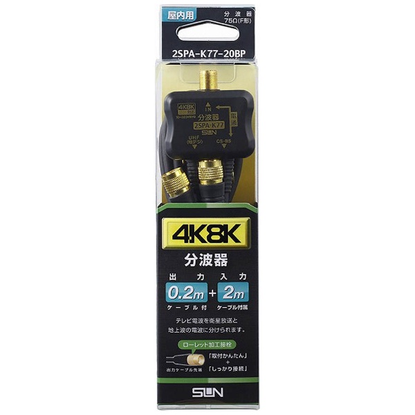 | 商品名 | 4K8K対応分波器 2SPA-K77-20BP [入力:L型プラグプラグ/出力:F型接栓/入力2mケーブル付属] |