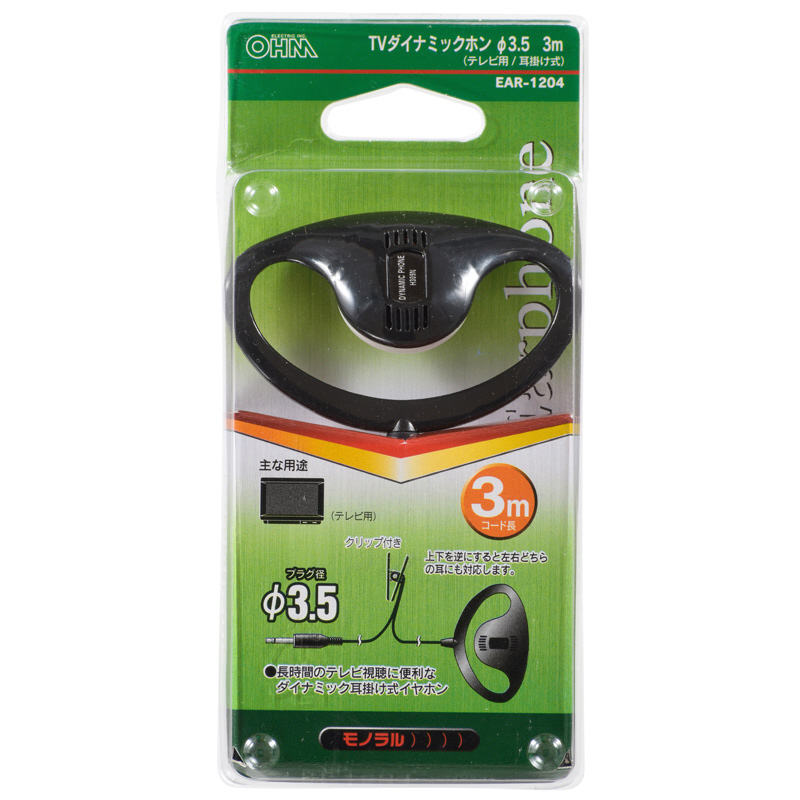 EAR-1204 ブラック テレビ用片耳イヤホン 耳かけ型