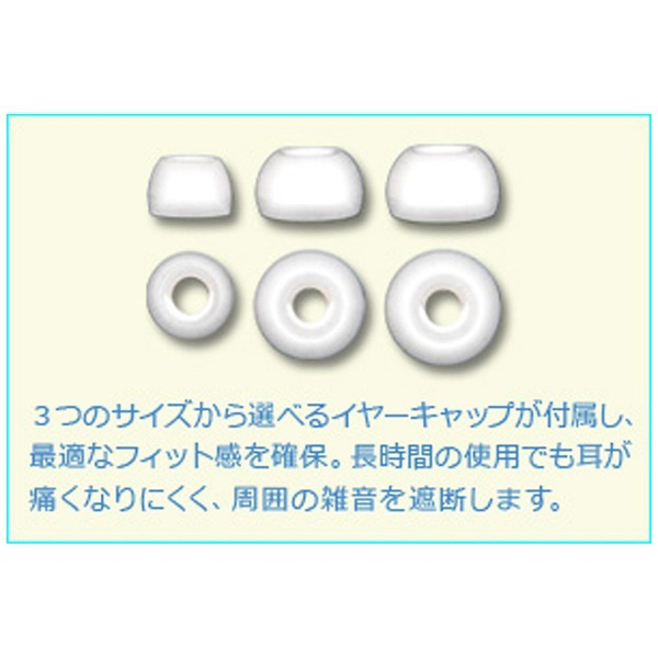 3つのサイズから選べるイヤーキャップ付属で、最適なフィット感を確保。