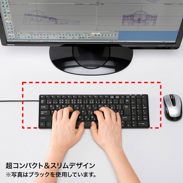 ・フルキーボードなのに幅345mmとサイズを極限まで小さくした超コンパクトデザイン&スリムなキーボードです。