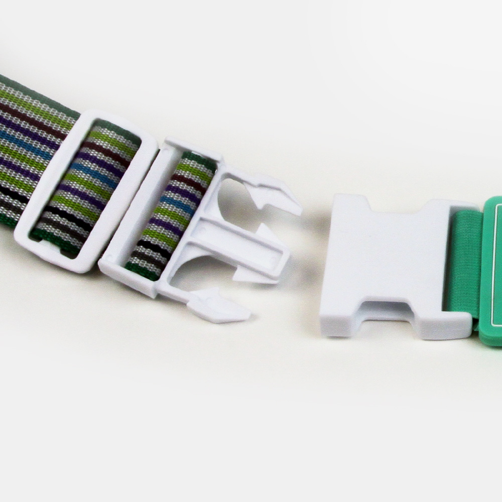 バックル裏面に書き込みスペースがありますので、予め必要な情報を書いておくことで取り違い防止および紛失時の連絡に有効です。