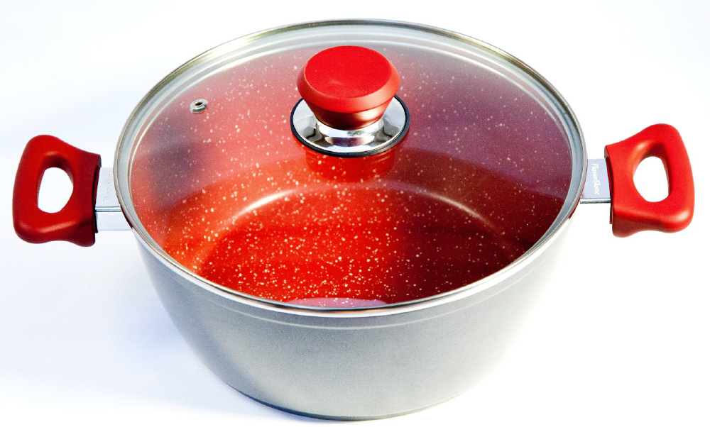 フレーバーストーン キャセロールパン 24cm(蓋付) レッド 66833