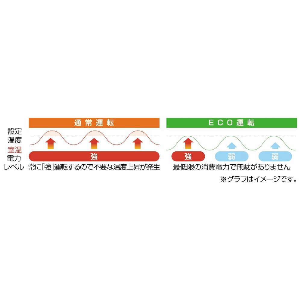 「ECO運転モード」ならボタンひとつで、最適な電力レベルを自動調整。また、設定温度よりわずかに控えめに運転し、快適さはそこなわずに、暖めすぎのムダを省きます。