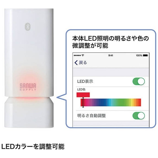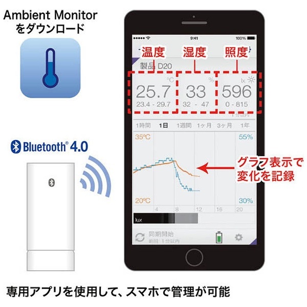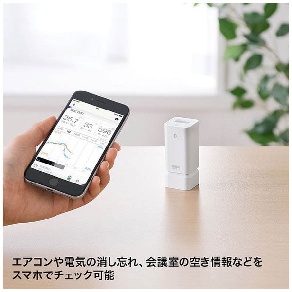 コンパクトボディに温度、湿度、照度センサーを搭載し、アプリ連動可能な計測器。