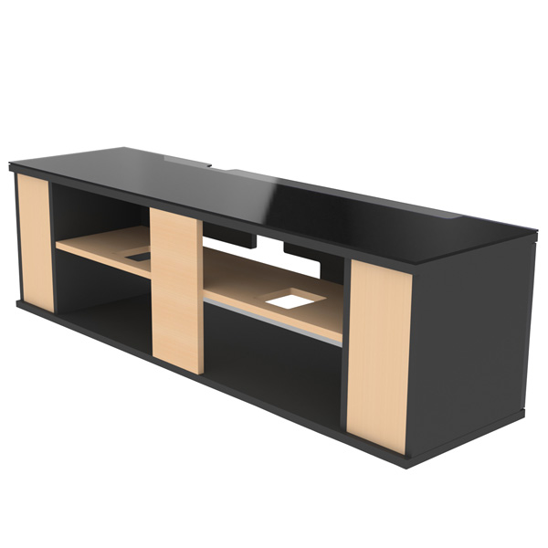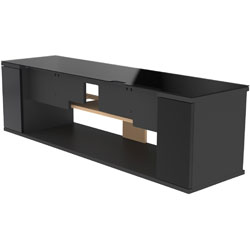 ・外観仕上げは前面をピアノフィニッシュ調とし、天板には高級感のあるガラスを使用しています。本ラックの左右には収納扉があり、リモコンなどの収納が可能です。また、電源タップを付属しており、本ラックの左右どちらかの側仕切り板に取り付けることで、テレビなどの接続機器の電源を一つにまとめることができます。