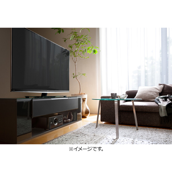 ・最大65型までの薄型大画面テレビの設置に最適です。「YSP-5600」を設置した際に、下のスペースにヤマハ製サブウーファー「YST-FSW150」および「YST-FSW050」を設置・収納することも可能です。天板高も438mmとラックの収容力を確保しながら極力おさえています。なお、ラック本体は組み立て作業不要※の完成品です。