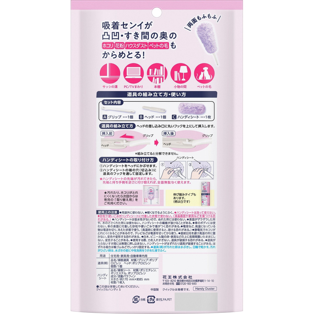 サッとなでるだけで360°瞬間キャッチ!毛先が長い吸着センイが凸凹、すき間の奥のホコリ・花粉・ハウスダストもかきとり、からめとって離さない。ホコリが落ちやすいところや、物が多いところ、電気製品や観葉植物・サッシの溝など、色々な場所に使えて便利です