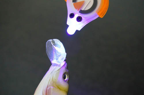 ■付属のUVライトを照射すると4秒で硬化します。必要時にのみに固まるという特性を持つ画期的な液体プラスチックです。