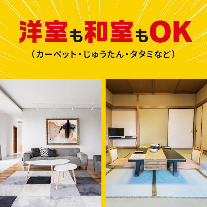タタミの内部は特殊注入針を使って注入駆除できます。カーペットやじゅうたんの表面、タタミの合わせ目は表面噴射で駆除できます。