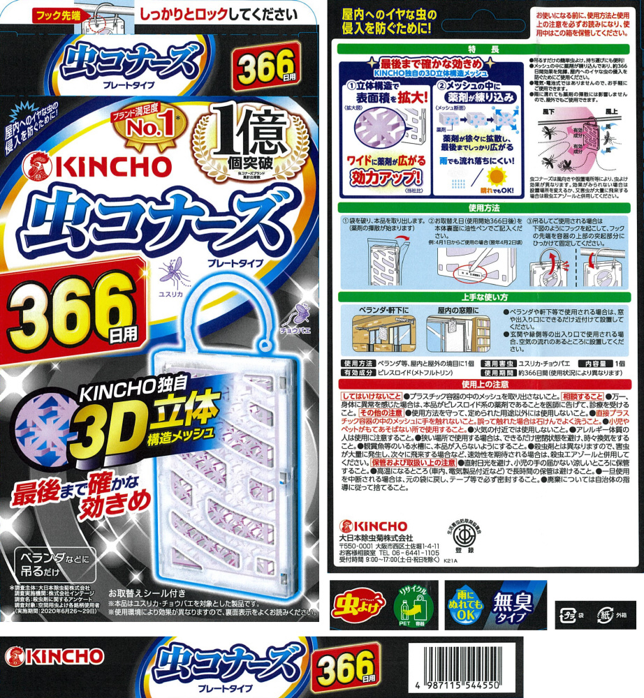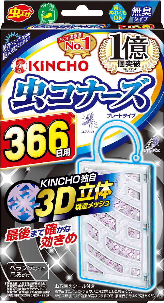 366日用。薬剤練り込み樹脂なので、雨や日光に強く、屋外でも安定して、最後まで薬剤が広がります。無臭。