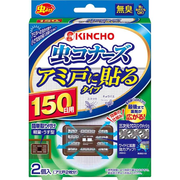 【在庫限り】 【虫コナーズ】アミ戸に貼るタイプ150日用 無臭 2個入〔虫よけ〕