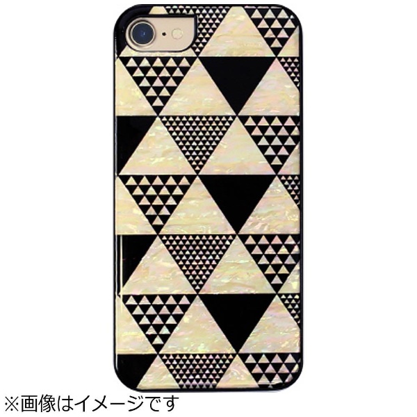 iPhone 7用 天然貝ケース 幾何学デザインシリーズ Pyramid ブラックフレーム ikins I8060i7