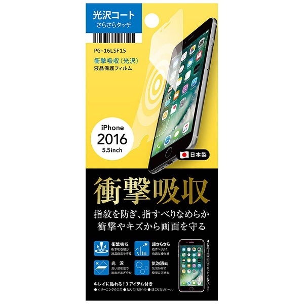 | 商品名 | iPhone 7 Plus用 液晶保護フィルム 衝撃吸収 光沢 PG-16LSF15 |