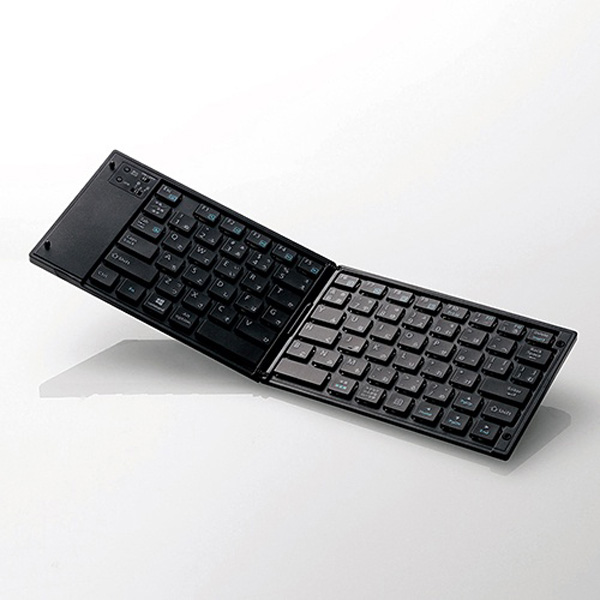 ポケットにも収まるコンパクト設計で、持ち運びに便利な折りたたみタイプのワイヤレスBluetoothキーボードです。