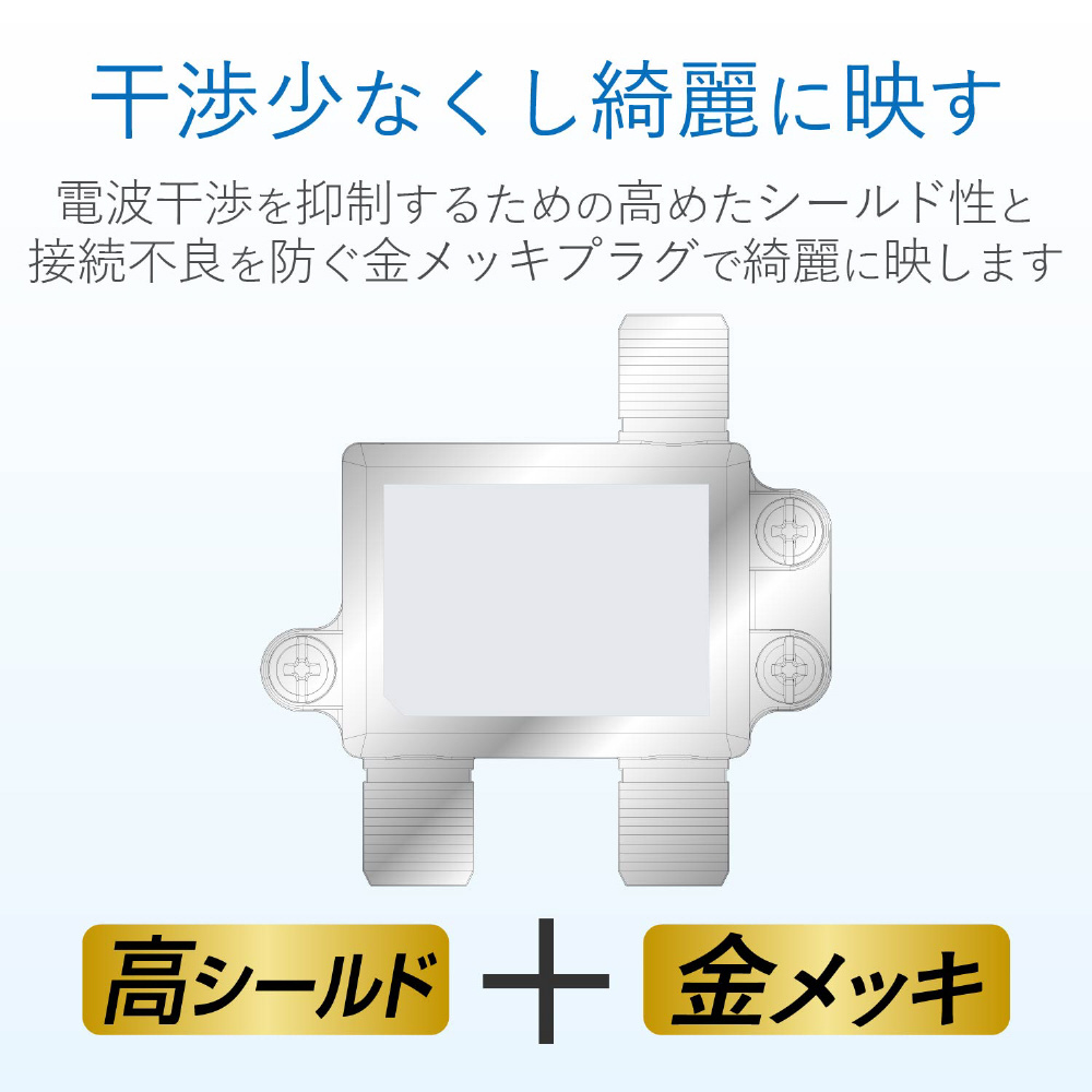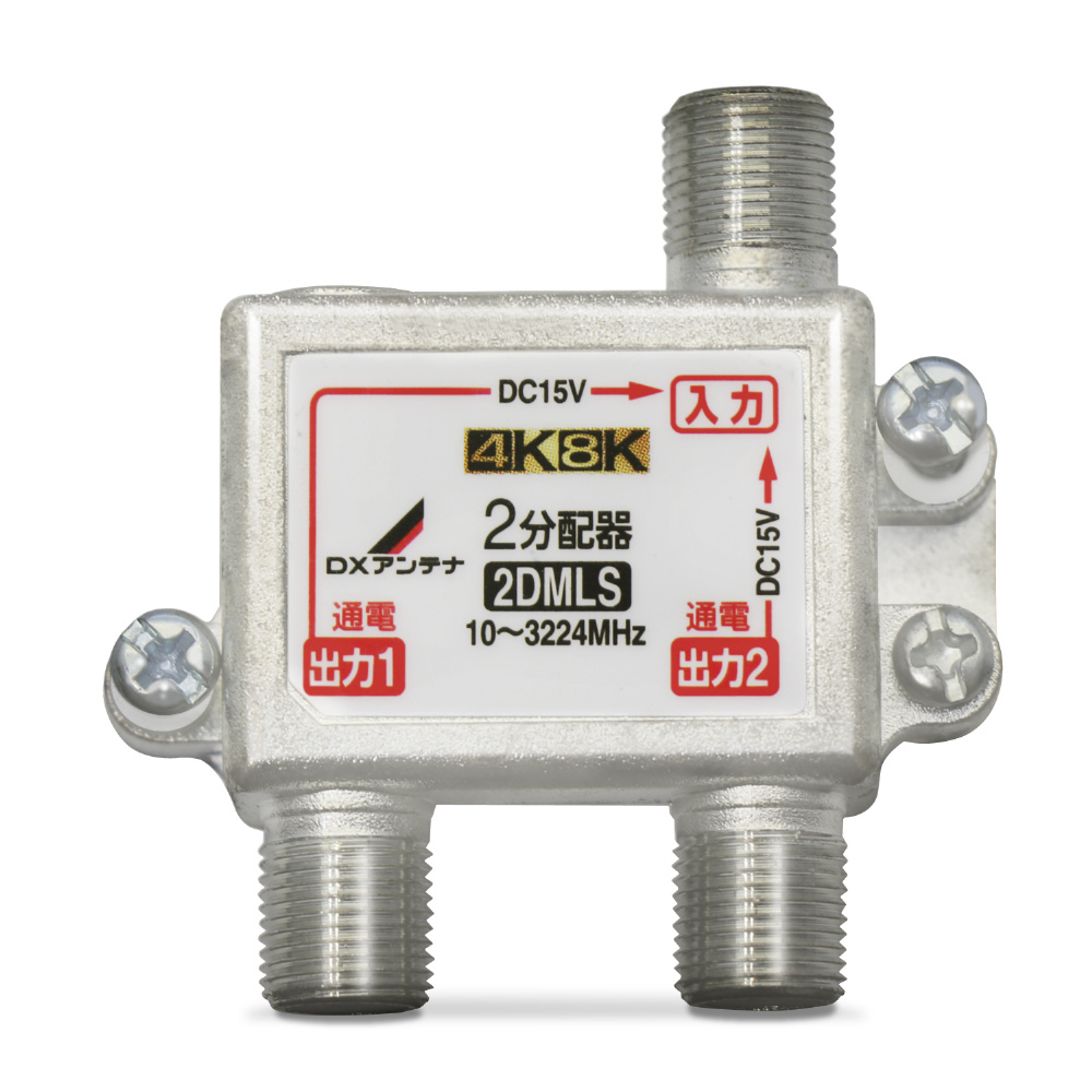 既存の2K放送から4K・8K(3224MHz)放送まで対応した製品です。テレビやレコーダーなどを増設する時に便利で、ノイズに強い2分配器。全ての出力端子から入力端子へ電源供給が可能で便利な全端子通電式。