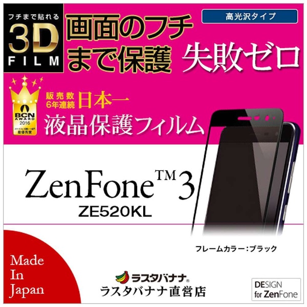【在庫限り】 ASUS ZenFone 3(ZE520KL)用 3D曲面 失敗ゼロ 高光沢フィルム ブラック FP770520KB