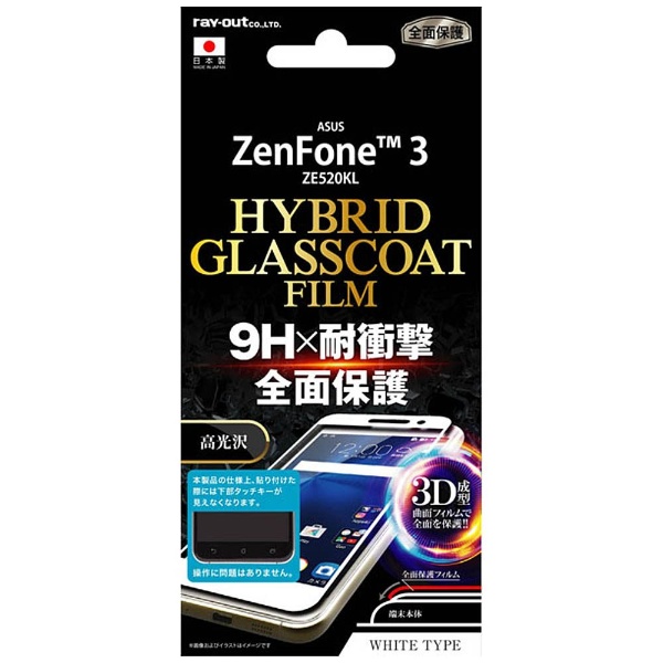 | 商品名 | ASUS ZenFone 3(ZE520KL)用 液晶保護フィルム ラウンド9H 耐衝撃 ハイブリッドガラスコート 高光沢 ホワイト RT-RAZ3RF/T1W |