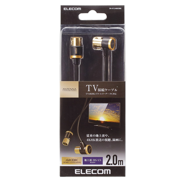 | 商品名 | 4K8K対応 2mアンテナケーブル[L型プラグ-ストレートプラグ]ブラック DH-ATLS48K20BK |