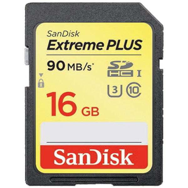最大読み出し速度90MB/秒、最大書き込み速度60MB/秒、UHSスピードクラス3(U3)に対応した、SanDisk Extreme PLUS(エクストリーム プラス) SDHC UHS-Iメモリーカード。
