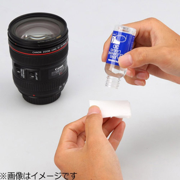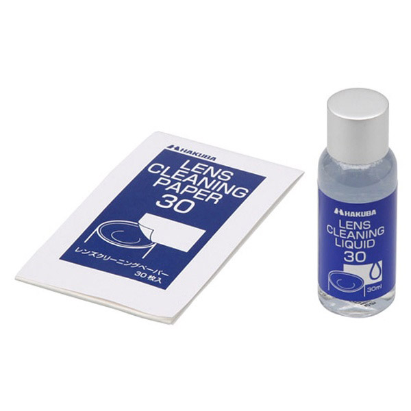 レンズや液晶画面の汚れをしっかり除去。クリーナー液30mlとクリーニングペーパー30枚のセットです。