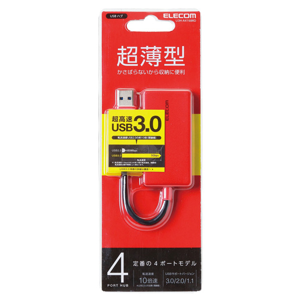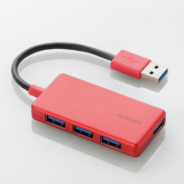 U3H-A416B USBハブ 4ポート バスパワー USB3.0 コンパクト レッド Windows11 Mac対応 MacBook Surface Chromebook他 ノートPC対応 レッド [バスパワー /4ポート /USB3.0対応]