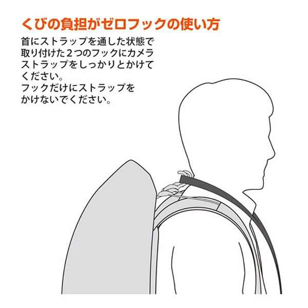 バックパックに取り付けたフック状のパーツにカメラストラップを引っ掛けることで、首に掛かるカメラの重みをゼロにする画期的な製品です。