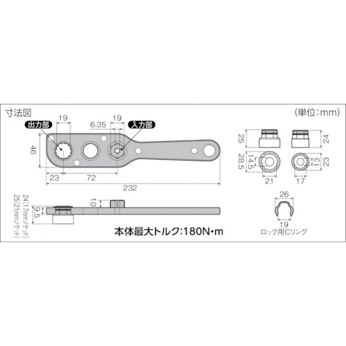 対辺17、19、21mmのボルト・ナットに対応しています。