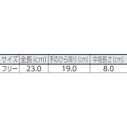 | 仕様1 | 全長(cm):23.0 手のひら周り(cm):19.0 中指長さ(cm):8.0 ゲージ数:7 |