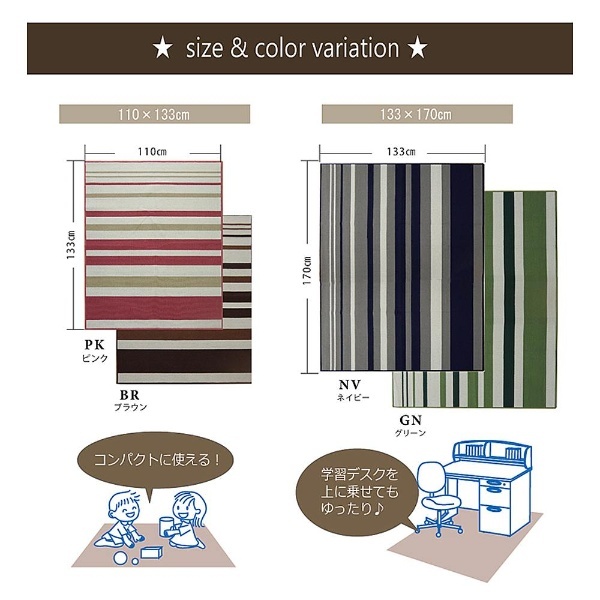 お子様の学習机の下や、ベッドサイド、ソファ前などにお勧めの商品です。