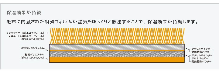 アルミパウダーが体温を熱反射し、放熱を防止。暖かさが持続します。