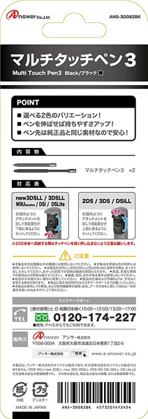 new3DSLL/3DSLL/3DS/2DS/DSiLL/Dsi/DSLite/WiiU対応 マルチタッチペン3 ブラック [ANS-3D082BK]
