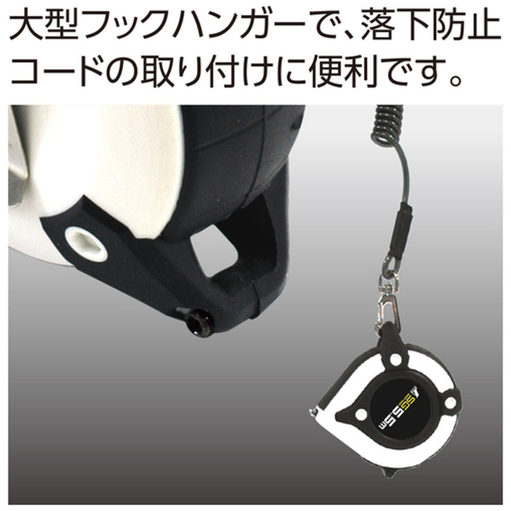 ■落下防止コードの取り付けに便利な大型フックハンガー付です。