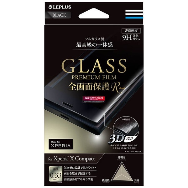 【在庫限り】 Xperia X Compact用 GLASS PREMIUM FILM 全画面保護 R 0.33mm ブラック LEPLUS LP-XPXCFGFRBK