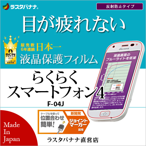 らくらくスマートフォン4(F-04J)専用 アイケアガードナー ブルーライトカット反射防止フィルム Y800F04J