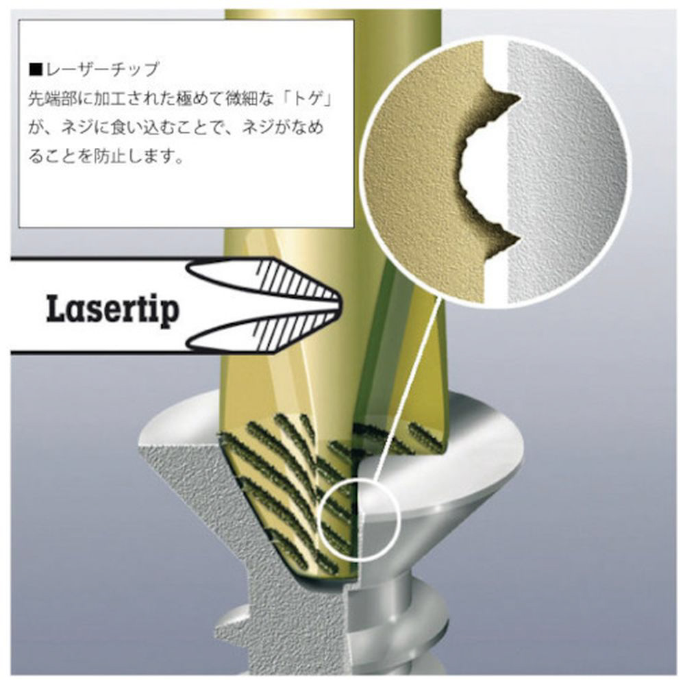 先端のレーザーチップにより、ねじへの食いつきに優れています。
